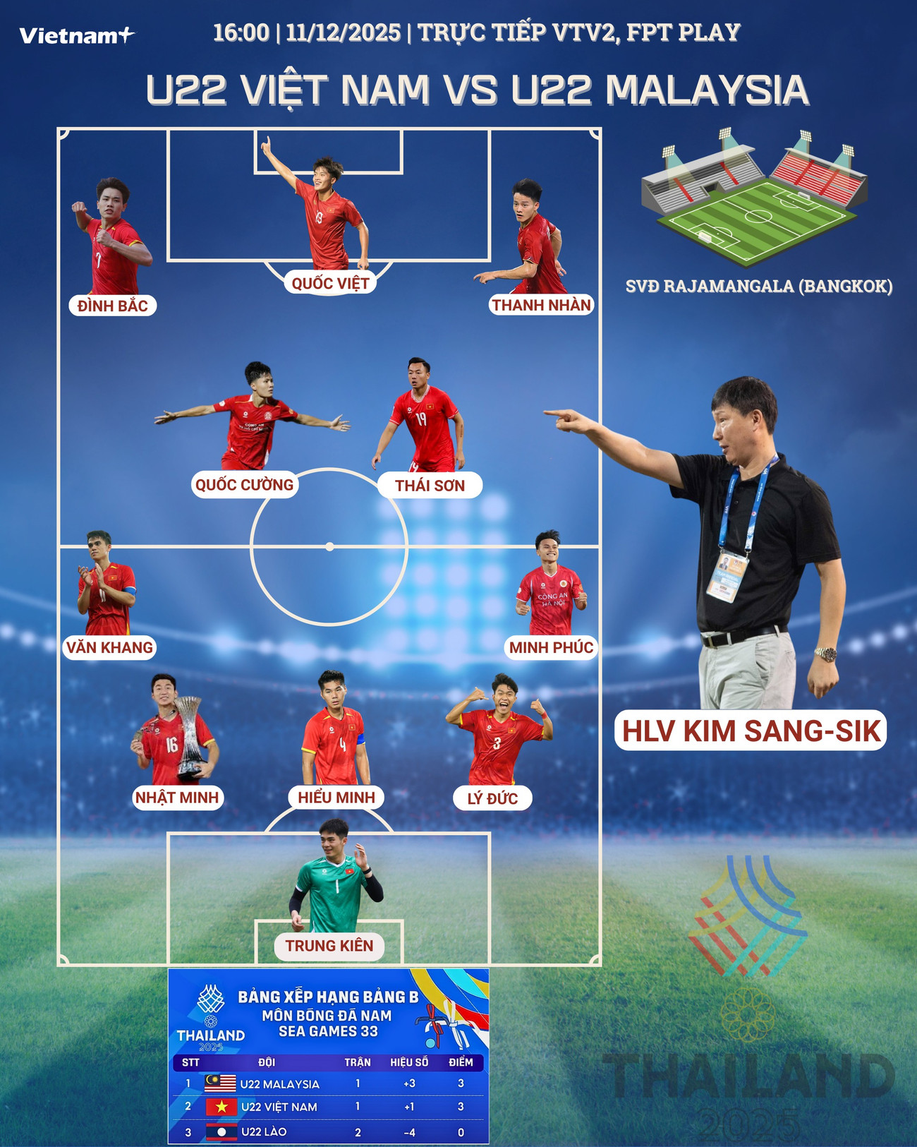 Tầm quan trọng của trận đấu gặp U22 Malaysia là điều không phải bàn cãi với thầy trò huấn luyện viên Kim Sang-sik. Do đó, U22 Việt Nam gần như chắc chắn sẽ sử dụng đội hình mạnh nhất cho trận "đại chiến" này.