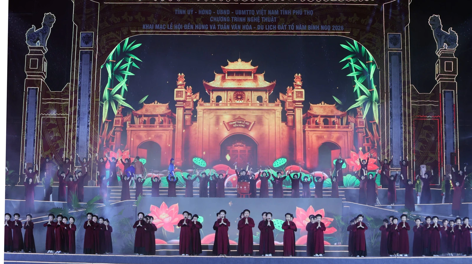 Phát biểu khai mạc, đồng chí Nguyễn Huy Ngọc - Phó Chủ tịch UBND tỉnh, Trưởng Ban Tổ chức Lễ hội Đền hùng và Tuần Văn hóa - Du lịch Đất Tổ năm Bính Ngọ 2026 nhấn mạnh: Chương trình Khai mạc với chủ đề “Linh thiêng nguồn cội - Đất Tổ Hùng Vương” là sự kiện có ý nghĩa đặc biệt quan trọng, không chỉ nhằm tôn vinh, gìn giữ và phát huy các giá trị lịch sử, văn hóa đặc sắc của dân tộc, mà còn thể hiện đạo lý “Uống nước nhớ nguồn”, tri ân công đức Tổ tiên. Qua đó, khơi dậy mạnh mẽ tinh thần đại đoàn kết toàn dân tộc, hun đúc niềm tự hào, ý chí tự cường và khát vọng phát triển đất nước phồn vinh, hạnh phúc.