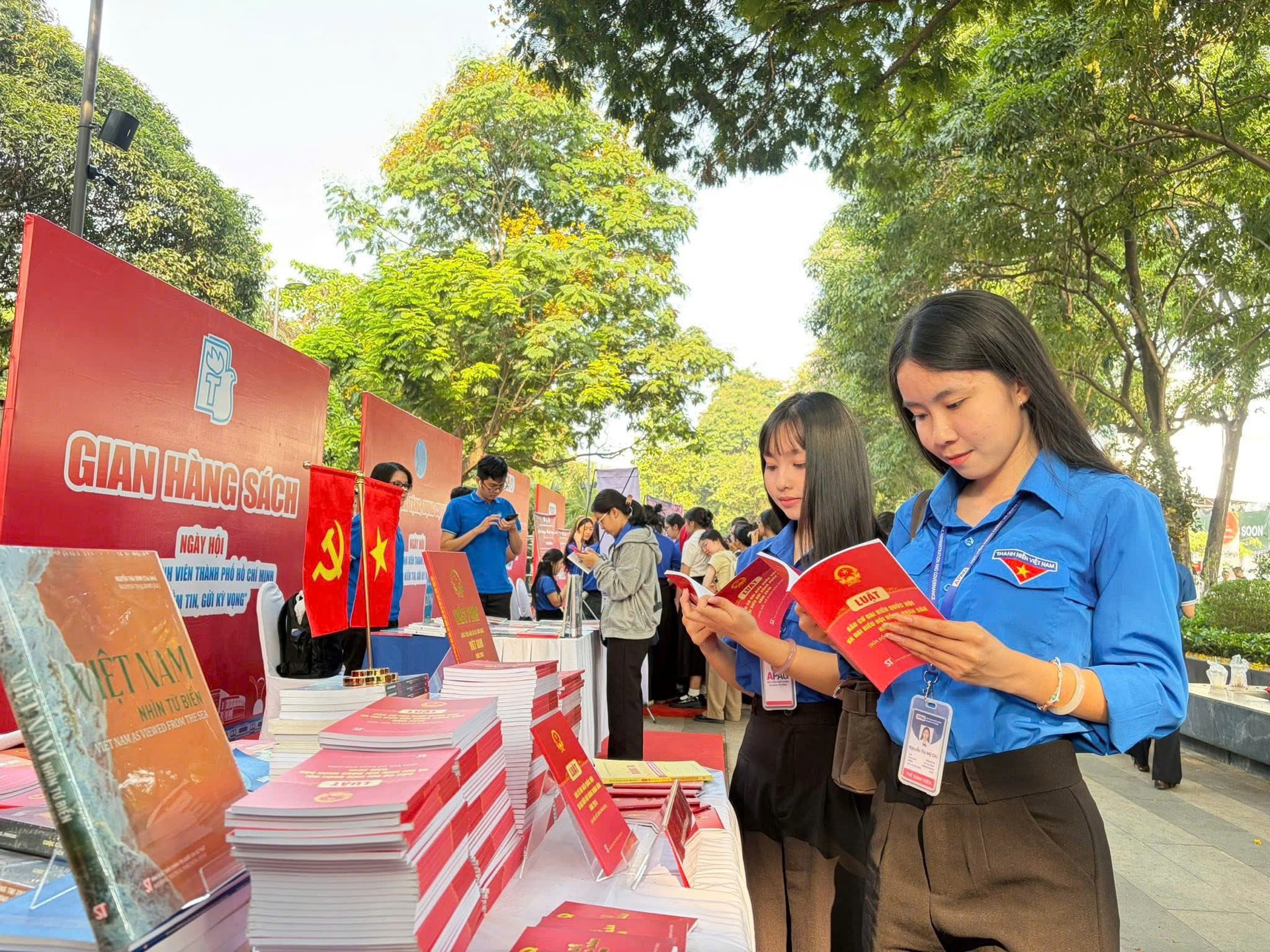 Các bạn trẻ tham gia tìm hiểu sách tại Ngày hội học sinh, sinh viên thành phố Hồ Chí Minh với chủ đề “Trao niềm tin, gửi kỳ vọng vào Ngày hội non sông”. Ảnh: M.Chi