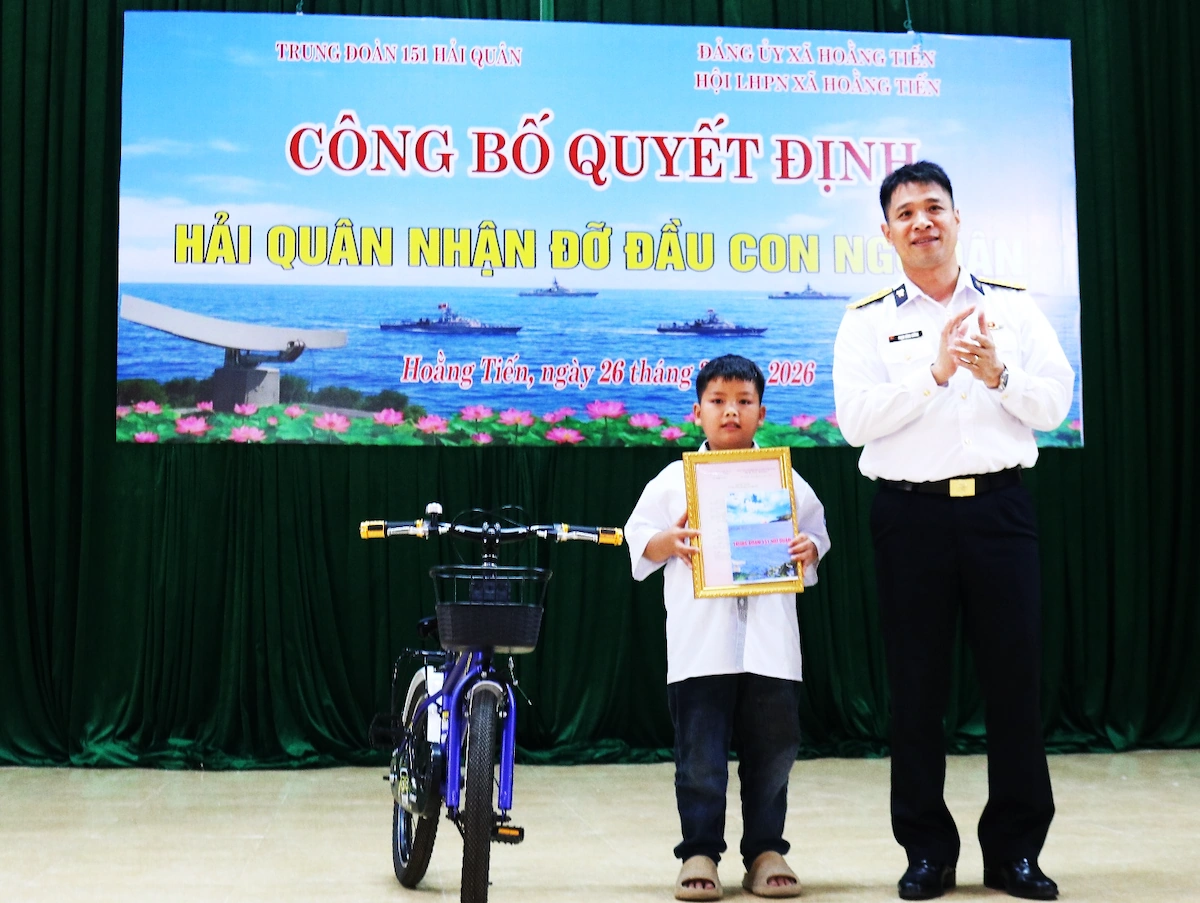 Tại hội nghị, Trung đoàn 151 đã công bố quyết định nhận đỡ đầu cháu Trương Đình Phúc, trú tại xã Hoằng Tiến. Cháu Phúc có hoàn cảnh đặc biệt khó khăn, bố mất năm 2024 trong quá trình khai thác hải sản trên biển, hiện cháu sống cùng mẹ.