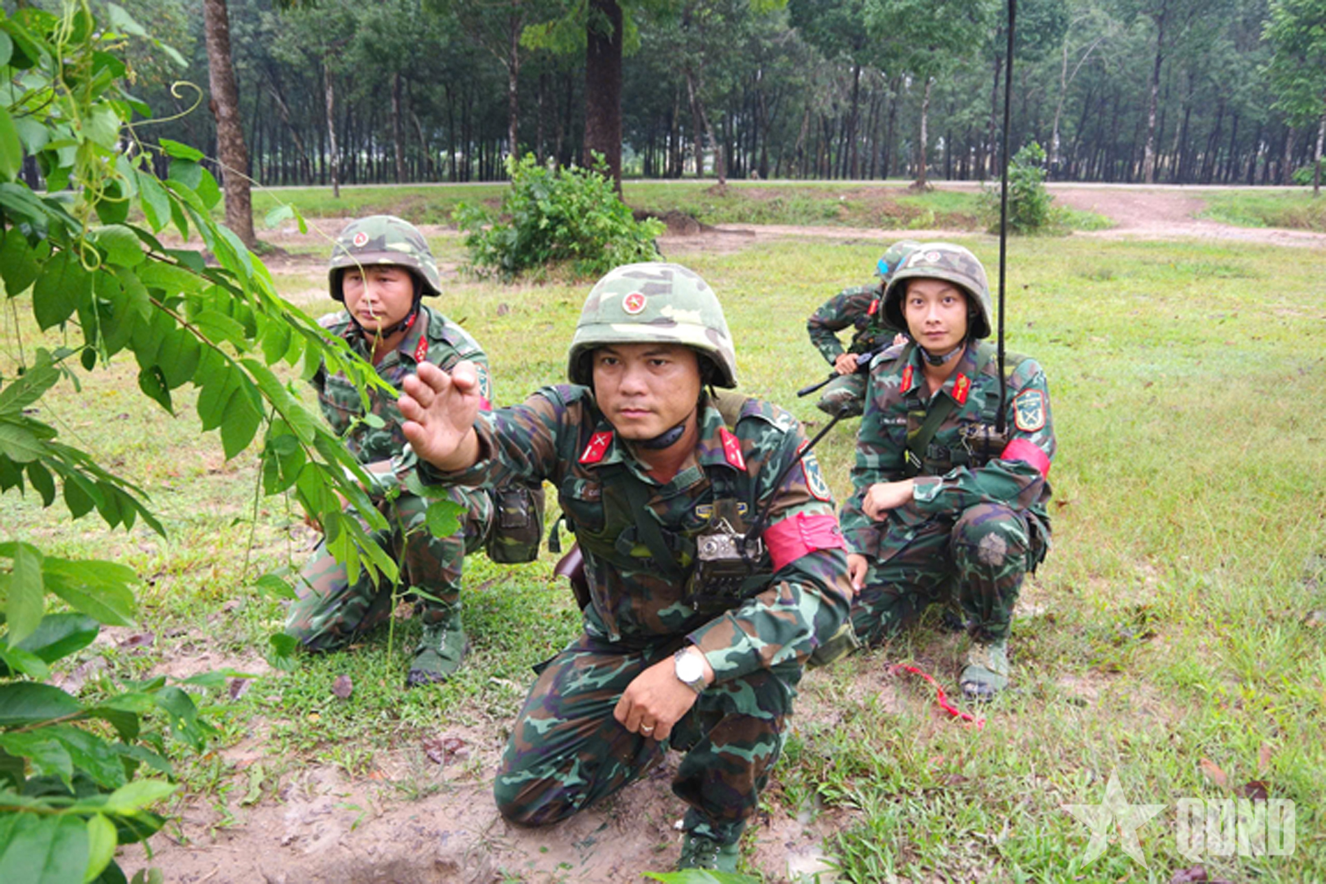 Giao nhiệm vụ tại thực địa trong diễn tập.
