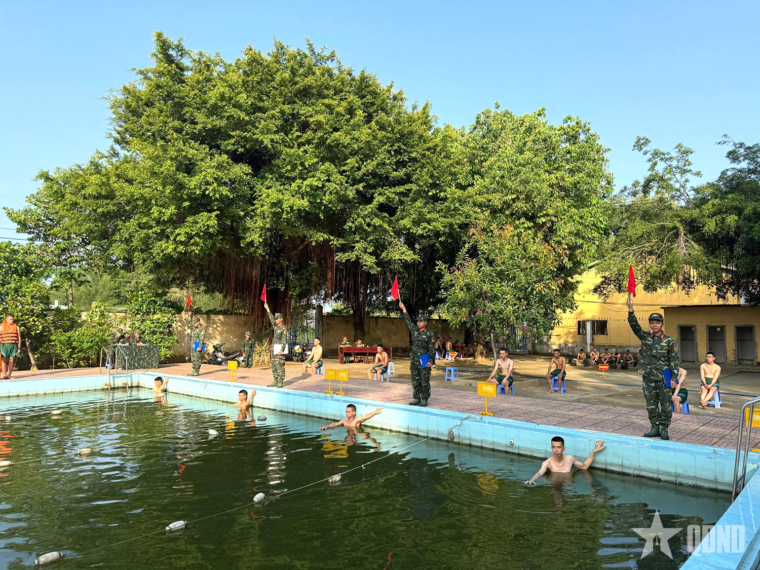 Chiến sĩ mới tham gia kiểm tra bơi.