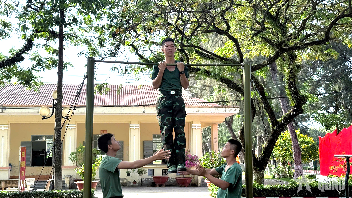 Tiểu đoàn 4, Trung đoàn 20 kiểm tra co tay xà đơn cho chiến sĩ mới.