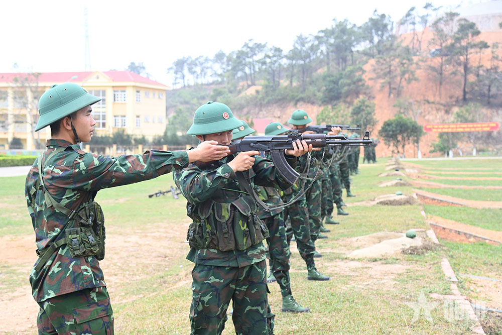 Chỉ huy Trung đoàn 244 (Bộ CHQS tỉnh Quảng Ninh) tuyên dương chiến sĩ mới đạt thành tích bắn giỏi trong kiểm tra 3 tiếng nổ.