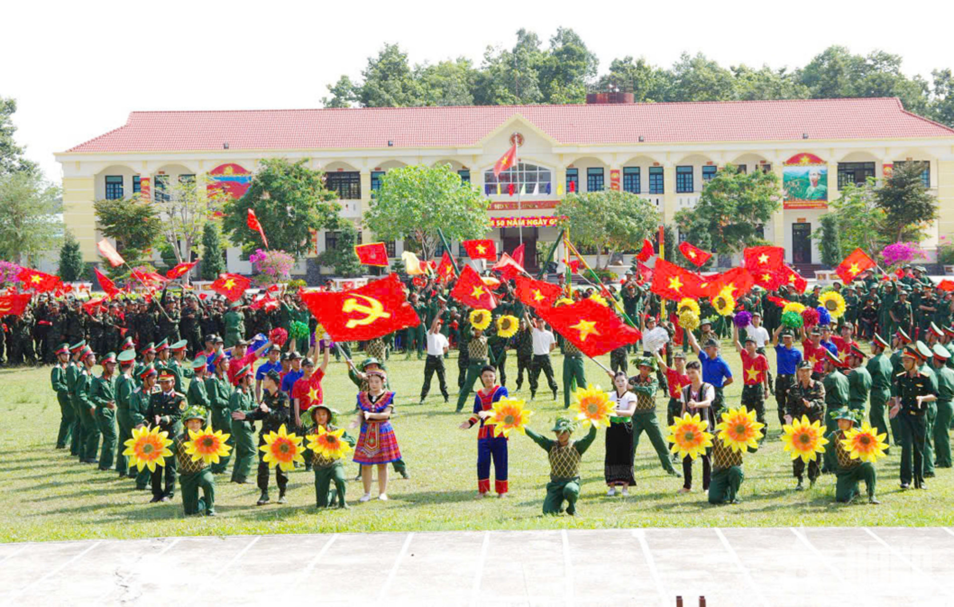 Tiết mục múa hát của cán bộ, chiến sĩ Trung đoàn 4 và đoàn viên, thanh niên đơn vị kết nghĩa.