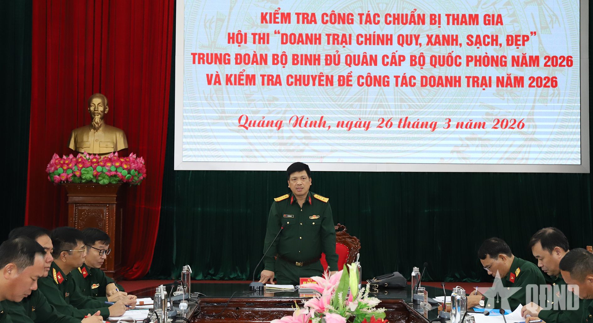 Kết luận kiểm tra thay mặt đoàn công tác, Đại tá Bùi Xuân Ninh biểu dương tinh thần tích cực, chủ động và kết quả công tác chuẩn bị cho hội thi của cán bộ, chiến sĩ Trung đoàn 43 đã đạt được trong thời gian qua. Đồng thời đề nghị cấp ủy, chỉ huy các cấp nắm chắc 6 nội dung, 24 tiêu chí của Hội thi “Doanh trại chính quy, xanh, sạch, đẹp” năm 2026 để xác định các chủ trương, biện pháp lãnh đạo, chỉ đạo phù hợp trong xây dựng, củng cố doanh trại.