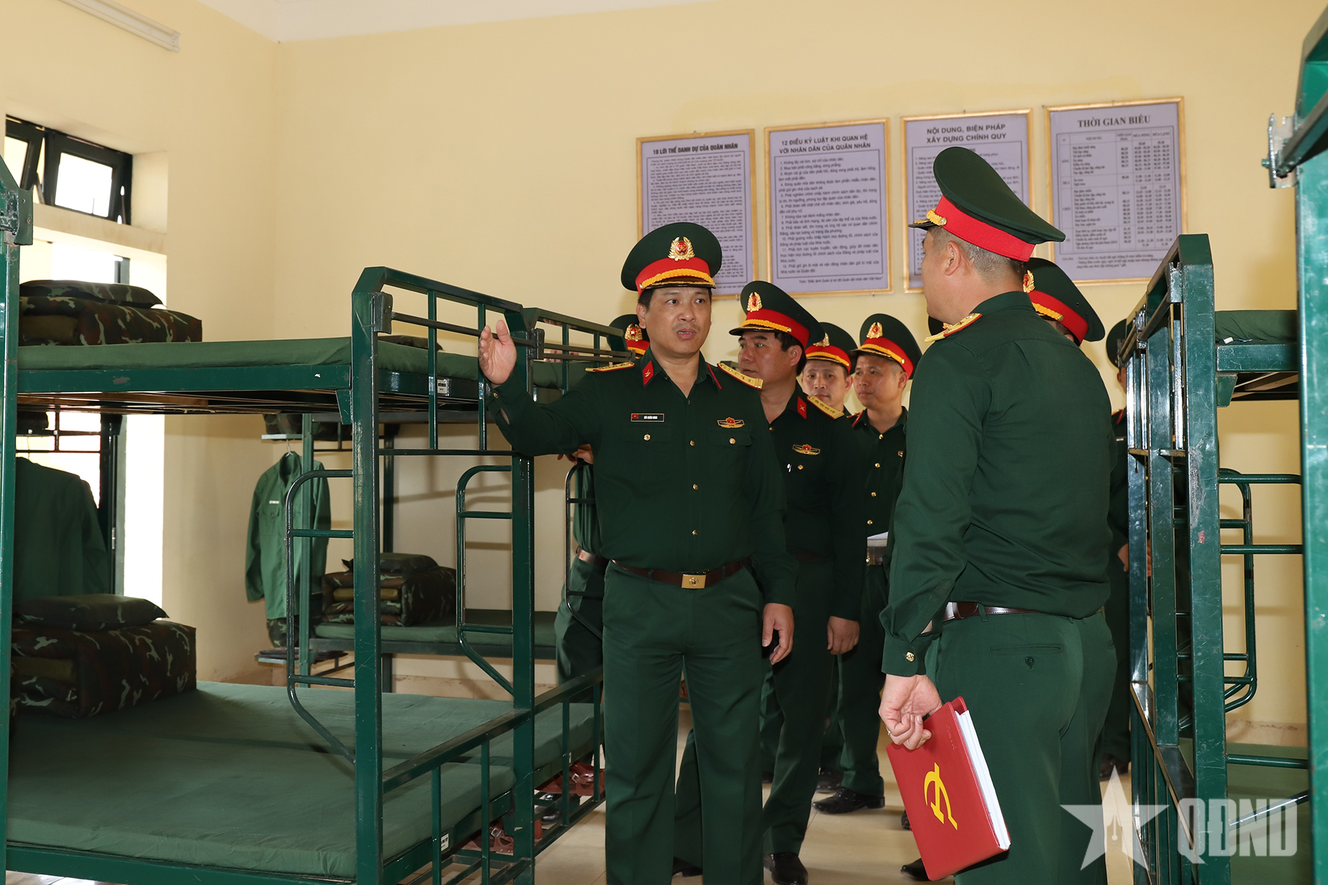 Bên cạnh đó, đoàn công tác đề nghị Trung đoàn 43 tiếp tục phát huy nội lực, phối hợp chặt chẽ với các nhà thầu để tu sửa, củng cố cảnh quan, môi trường doanh trại của đơn vị, nhất là hệ thống hạ tầng, các thiết chế văn hóa, công trình phụ trợ, bồn hoa, cây cảnh; tập trung hoàn chỉnh xây dựng, cải tạo hệ thống chuồng trại chăn nuôi, vườn tăng gia tập trung, vườn rau gia vị, vườn thuốc nam..., xác định cơ cấu cây trồng phù hợp. Đồng thời hoàn thiện hệ thống biển, bảng, dây giá chính quy, bảng tin, pa nô, khẩu hiệu tuyên truyền, hệ thống biển báo giao thông theo đúng quy định.