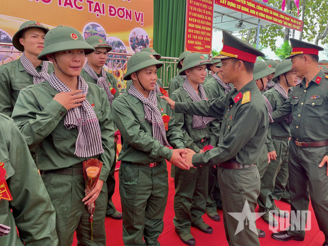 Đón chiến sĩ mới về Trung đoàn 584 (Bộ CHQS tỉnh Đắk Lắk) học tập, công tác.