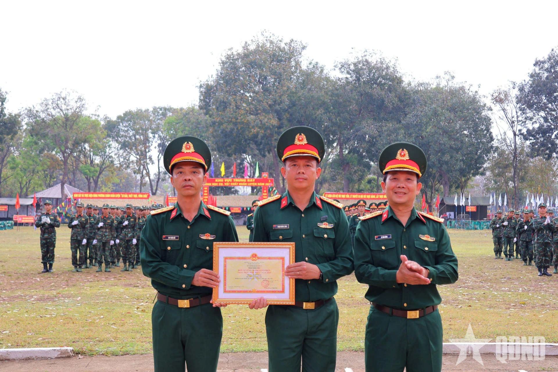 Thừa ủy quyền của Tư lệnh Quân khu 5, lãnh đạo Bộ CHQS tỉnh Đắk Lắk trao danh hiệu “Đơn vị vững mạnh toàn diện, mẫu mực, tiêu biểu” năm 2025 tặng Trung đoàn 584.