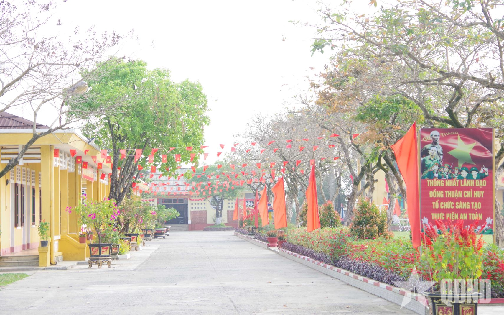 Cờ hoa được bố trí rực rỡ quanh doanh trại.