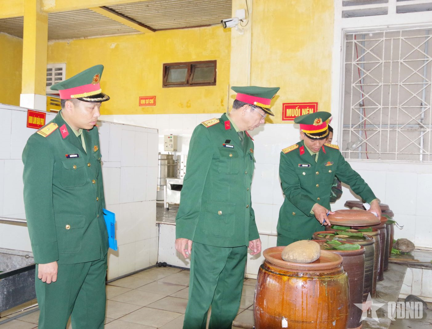 Thủ trưởng Bộ CHQS TP Huế kiểm tra công tác chuẩn bị thực phẩm để tiếp nhận chiến sĩ mới.