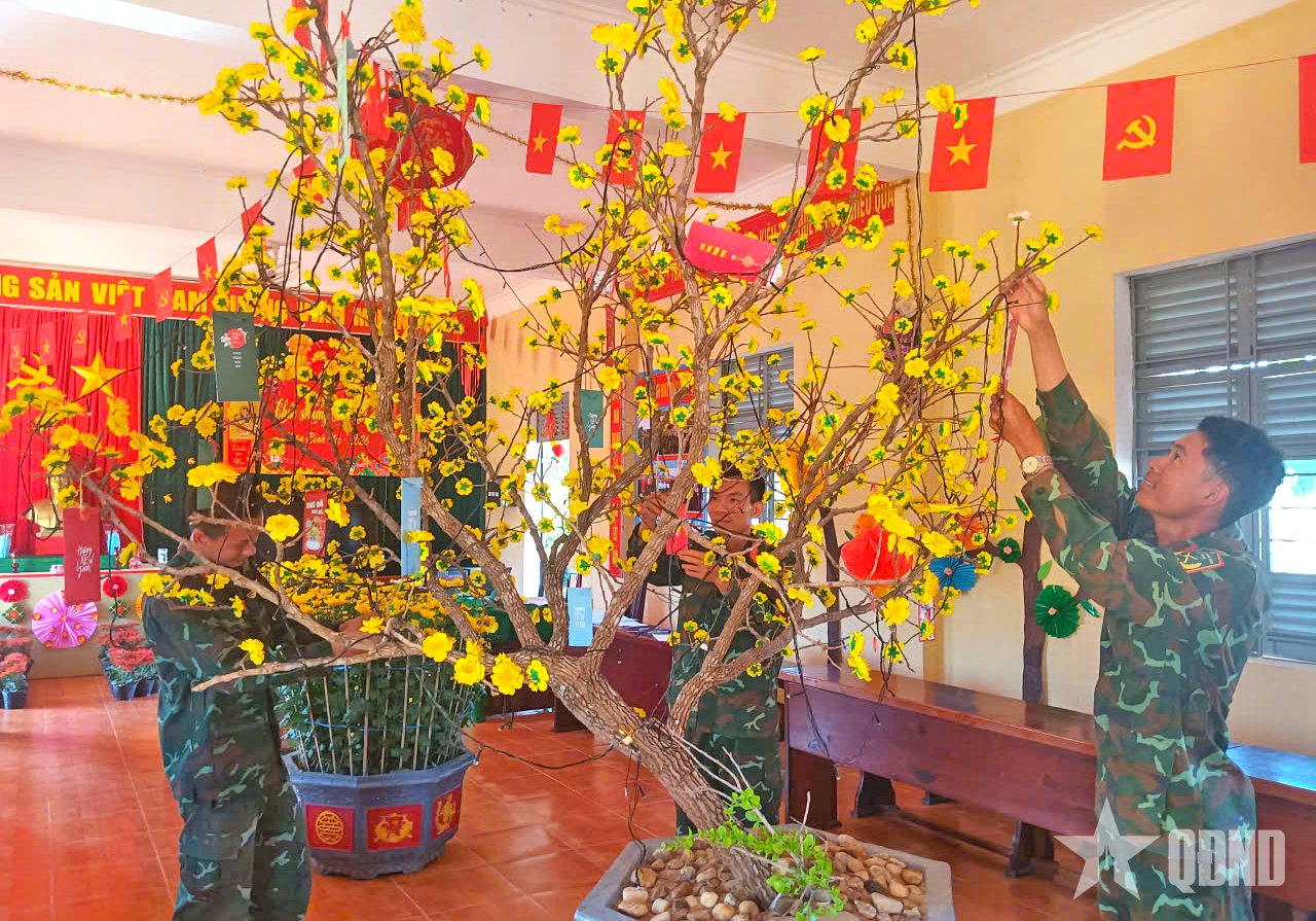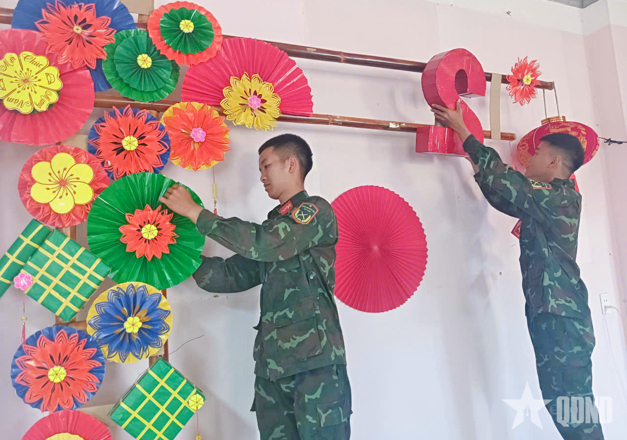 Chiến sĩ Trung đoàn 66 trang trí Tết.