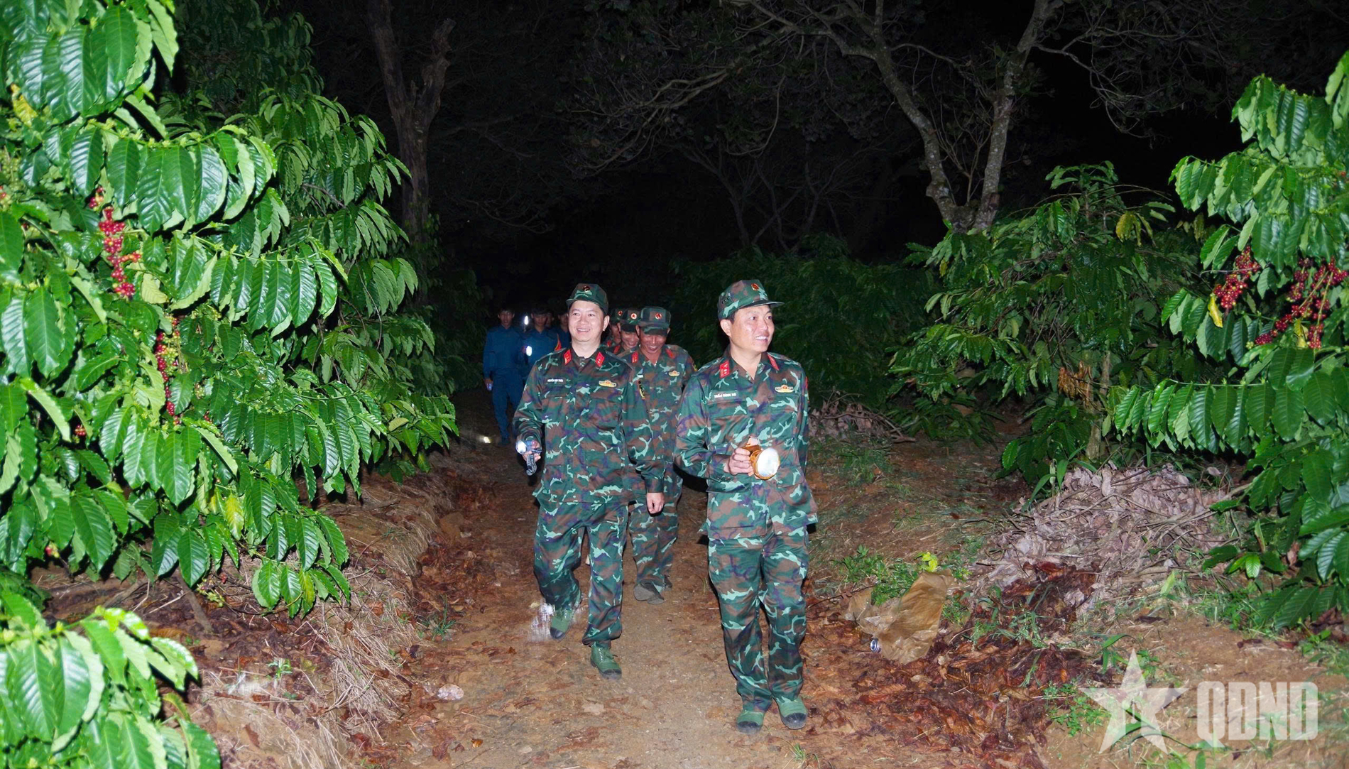 Trung đoàn 719 phối hợp với lực lượng vũ trang xã Đak Nhau tăng cường tuần tra đêm trên các tuyến đường trọng điểm.