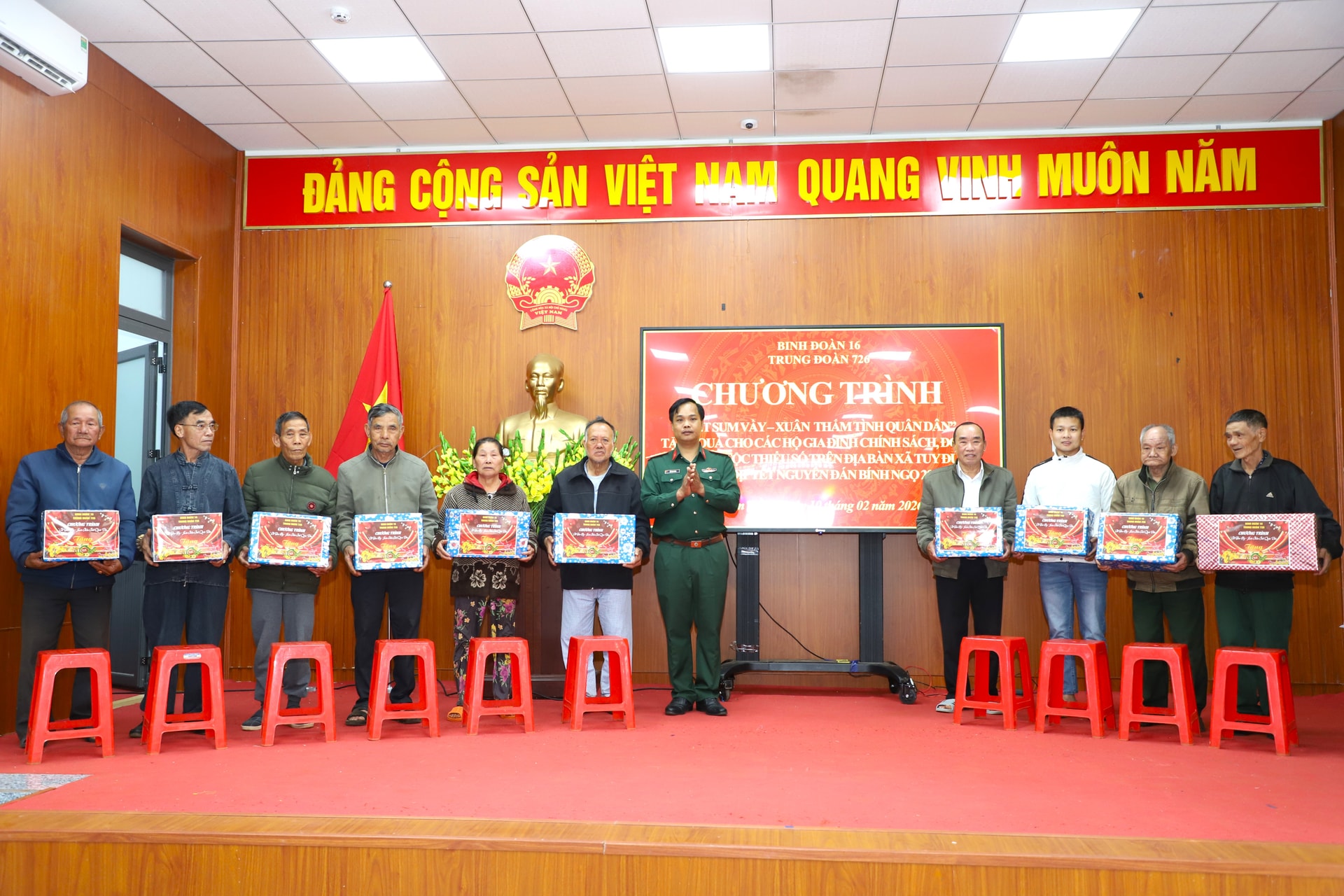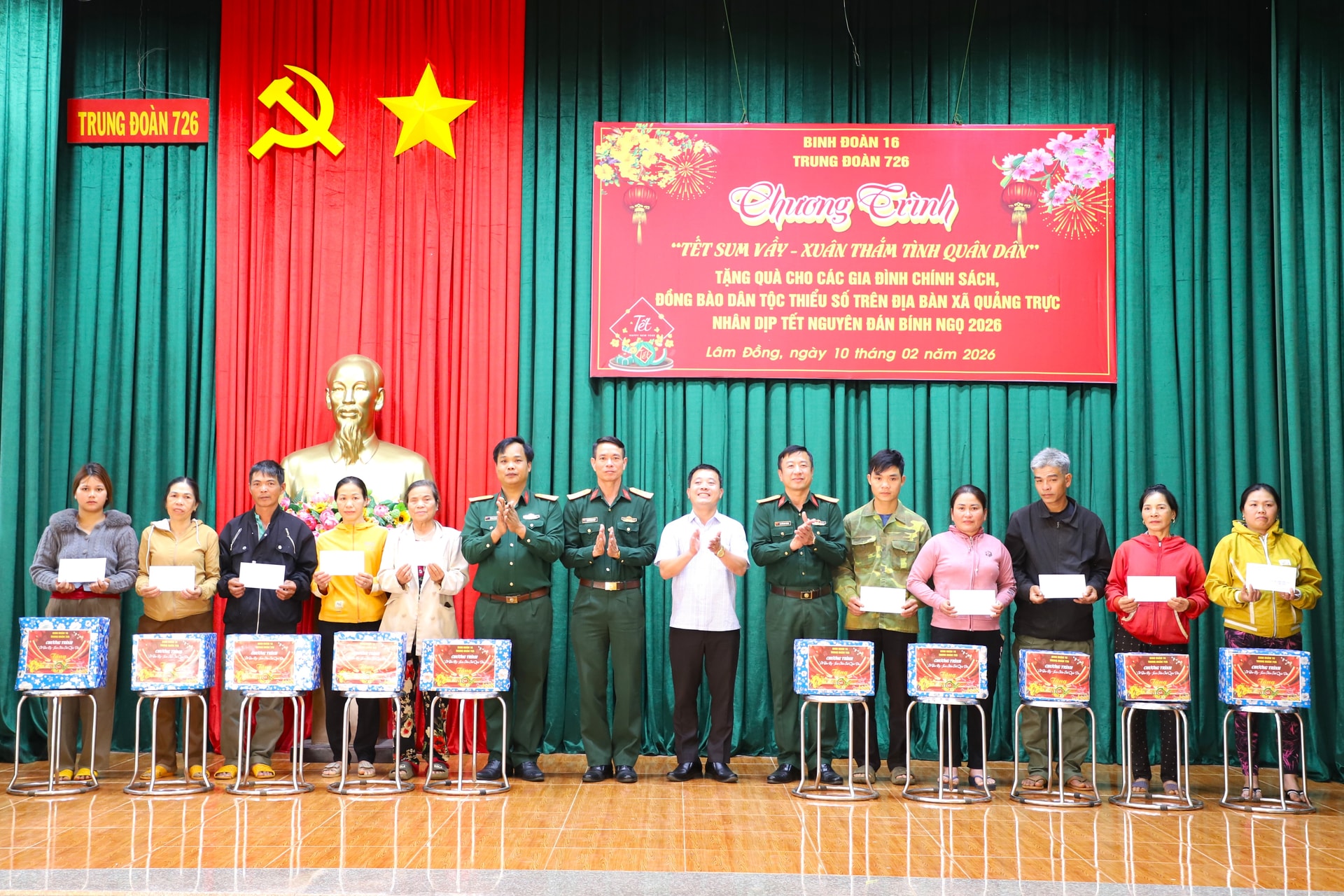 Phát biểu tại chương trình, Thượng tá Đỗ Văn Tráng, Bí thư Đảng ủy, Chính ủy Trung đoàn 726 nhấn mạnh: Chương trình “Tết sum vầy – Xuân thắm tình quân dân” là hoạt động mang ý nghĩa chính trị, xã hội và nhân văn sâu sắc, thể hiện truyền thống tốt đẹp “Uống nước nhớ nguồn”, “Lá lành đùm lá rách” của dân tộc Việt Nam; đồng thời là trách nhiệm, tình cảm của cán bộ, công nhân viên, người lao động Trung đoàn 726 đối với các gia đình chính sách, đồng bào các dân tộc còn gặp nhiều khó khăn, nhất là ở vùng sâu, vùng xa, vùng biên giới.
