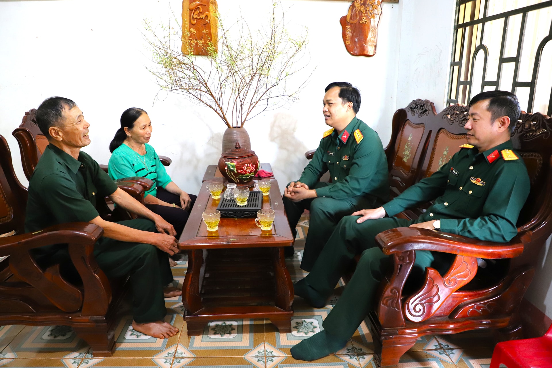 Đoàn công tác Trung đoàn 726 (Binh đoàn 16) đến thăm, hỏi động viên và tặng quà các hộ gia đình chính sách