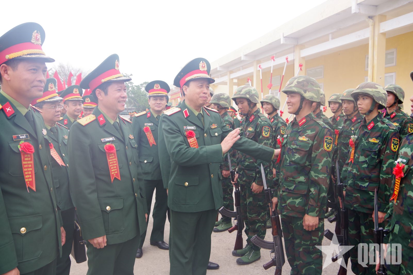 Thiếu tướng Nguyễn Đức Dũng, Phó tư lệnh, Tham mưu trưởng Quân khu 3 dự, chỉ đạo Lễ ra quân huấn luyện năm 2025 của Trung đoàn 8.
