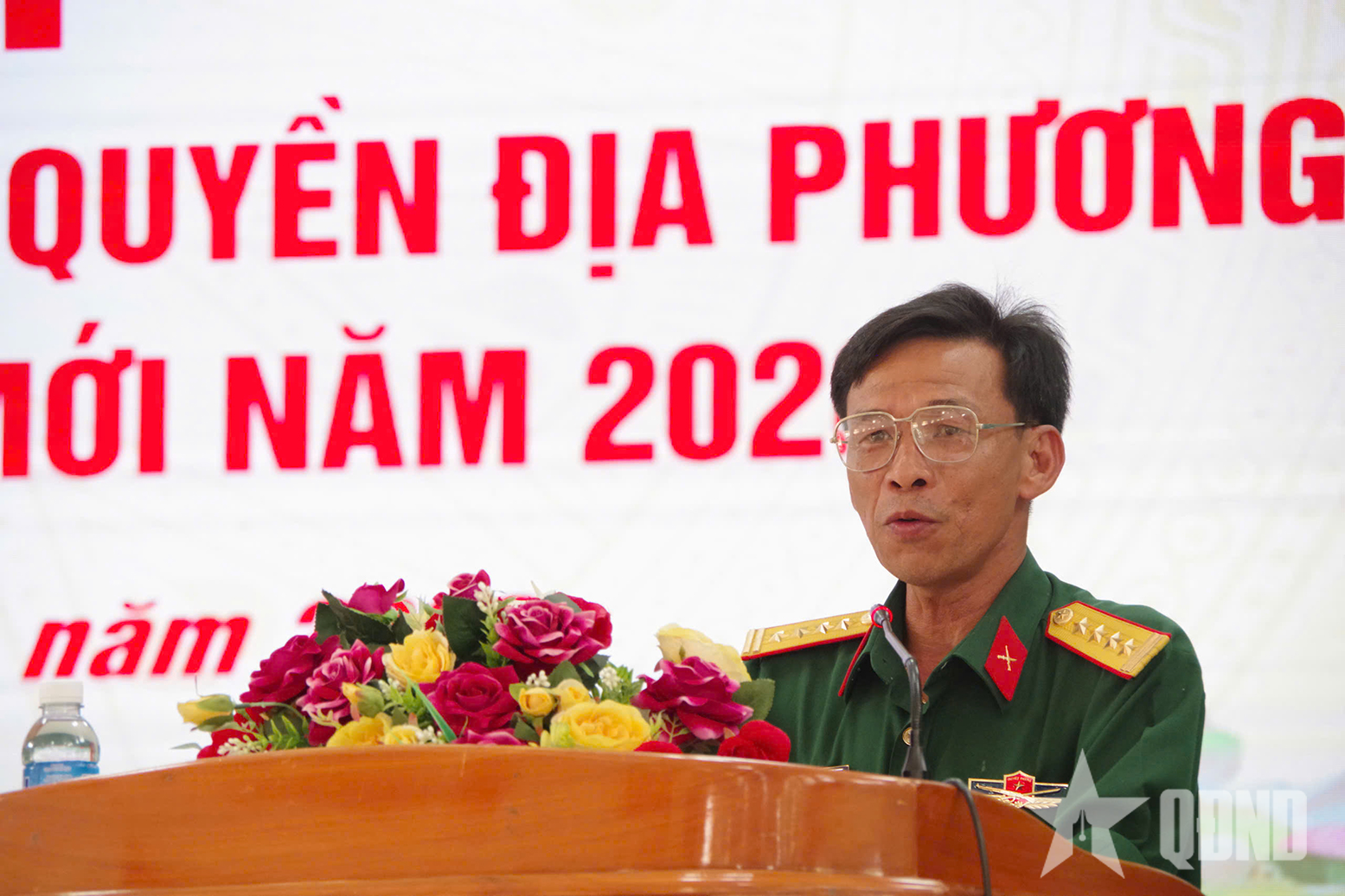 Đại tá Nguyễn Thanh Quảng, Phó chính ủy Bộ CHQS tỉnh Lâm Đồng phát biểu tại chương trình.