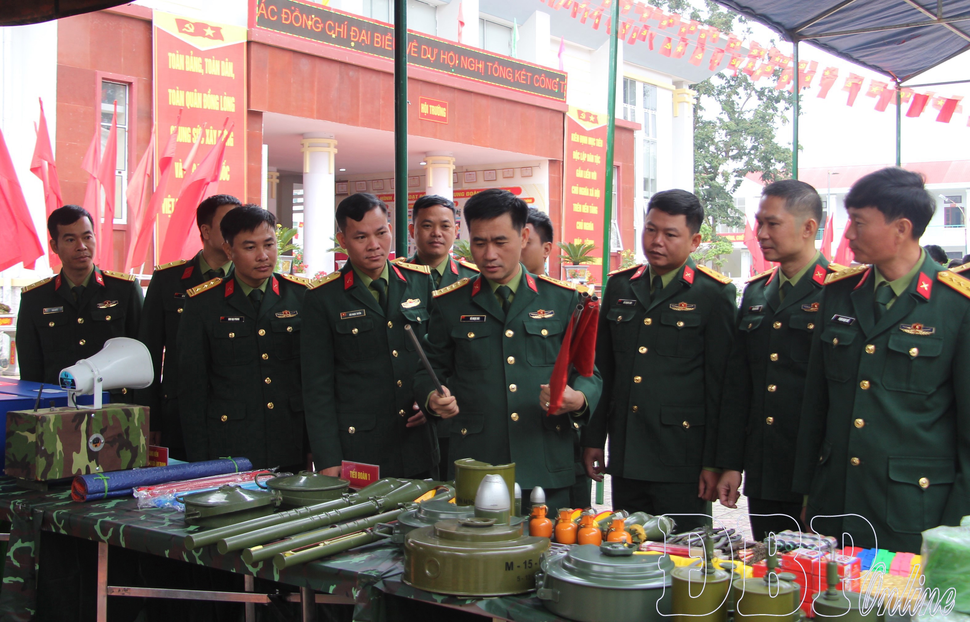 Đại biểu dự hội nghị tham quan trưng bày mô hình học cụ, sáng kiến huấn luyện của Trung đoàn 82.