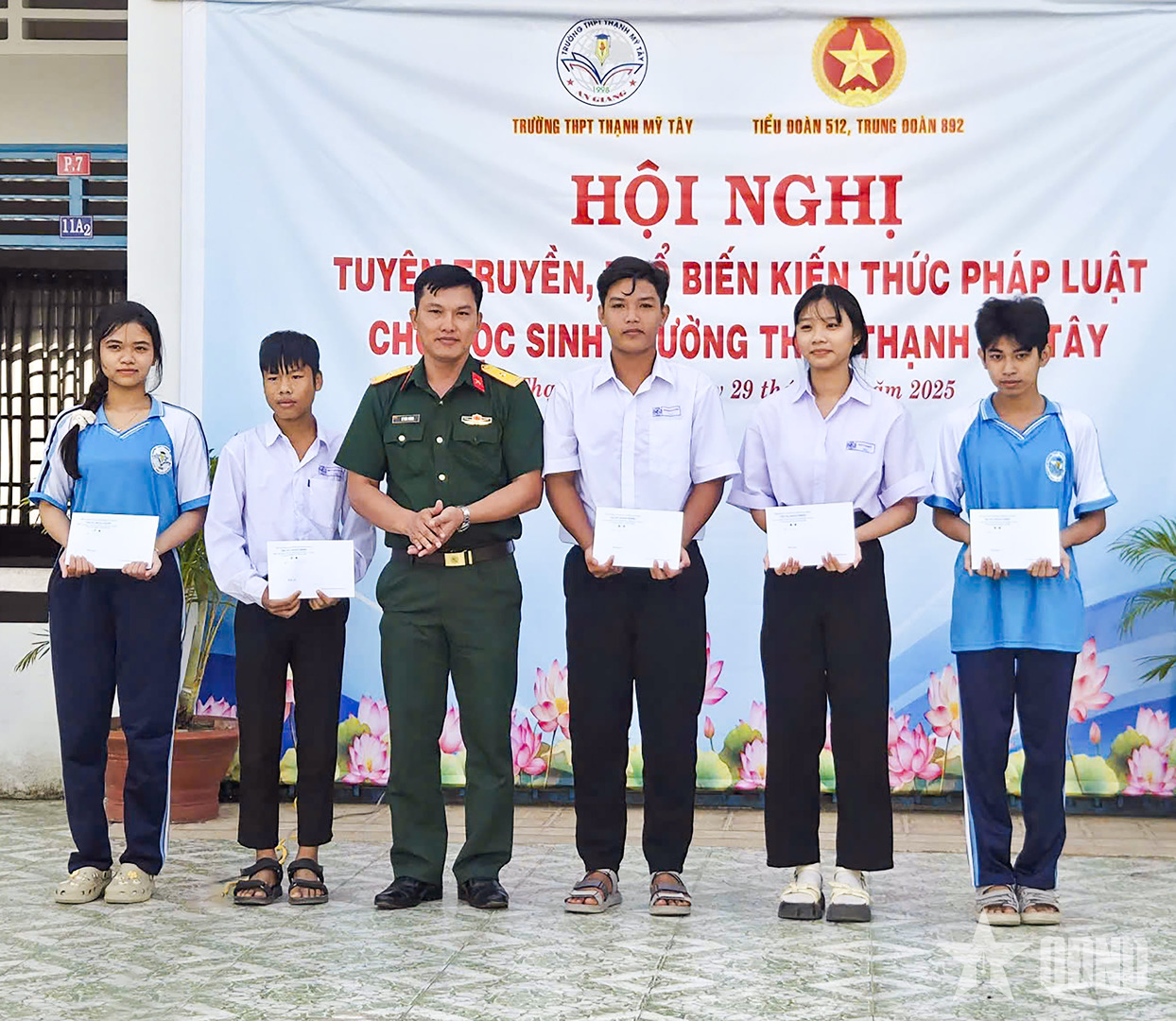 Đại diện Ban Giám hiệu Trường THPT Thạnh Mỹ Tây đánh giá cao vai trò của lực lượng vũ trang trong đồng hành giáo dục thế hệ trẻ, khẳng định: “Trong bối cảnh các thông tin xấu độc trên mạng xã hội tác động ngày càng mạnh đến học sinh, việc phối hợp với Tiểu đoàn 512 tổ chức những buổi tuyên truyền thiết thực như thế này giúp các em trang bị ‘lá chắn’ pháp lý, nâng cao khả năng nhận diện đúng - sai, từ đó tự điều chỉnh hành vi”.
