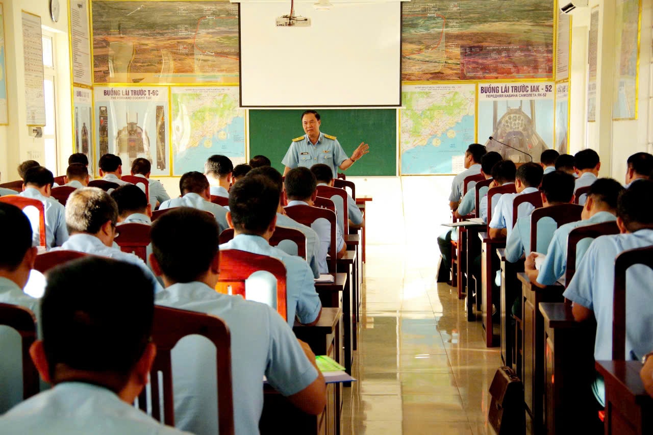 Thiếu tướng Bùi Thiên Thau, Phó Tư lệnh Quân chủng Phòng không - Không quân phát biểu giảng bình sau ban bay cán bộ của Trung đoàn 920
