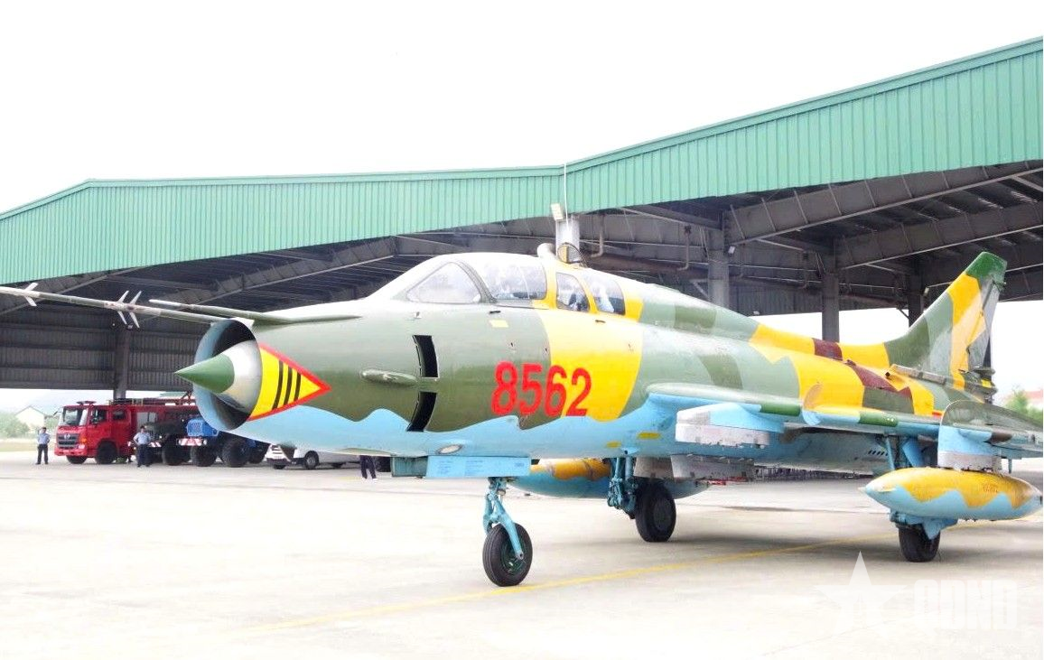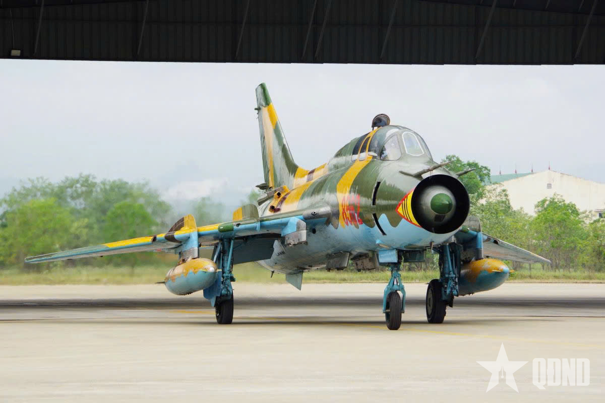 Máy bay Su-22 lăn ra đường lăn chuẩn bị cất cánh.