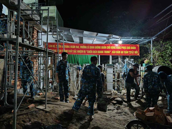 Tại địa phương, cán bộ, chiến sĩ Trung đoàn 940 tập trung khảo sát hiện trạng, vận chuyển vật liệu, dựng lại khung nhà, gia cố nền móng và san dọn mặt bằng cho những hộ dân bị sập, đổ nhà cửa. Hoạt động này nhằm bảo đảm tất cả các gia đình bị thiệt hại đều có mái ấm ổn định để đón Tết Nguyên đán 2026.