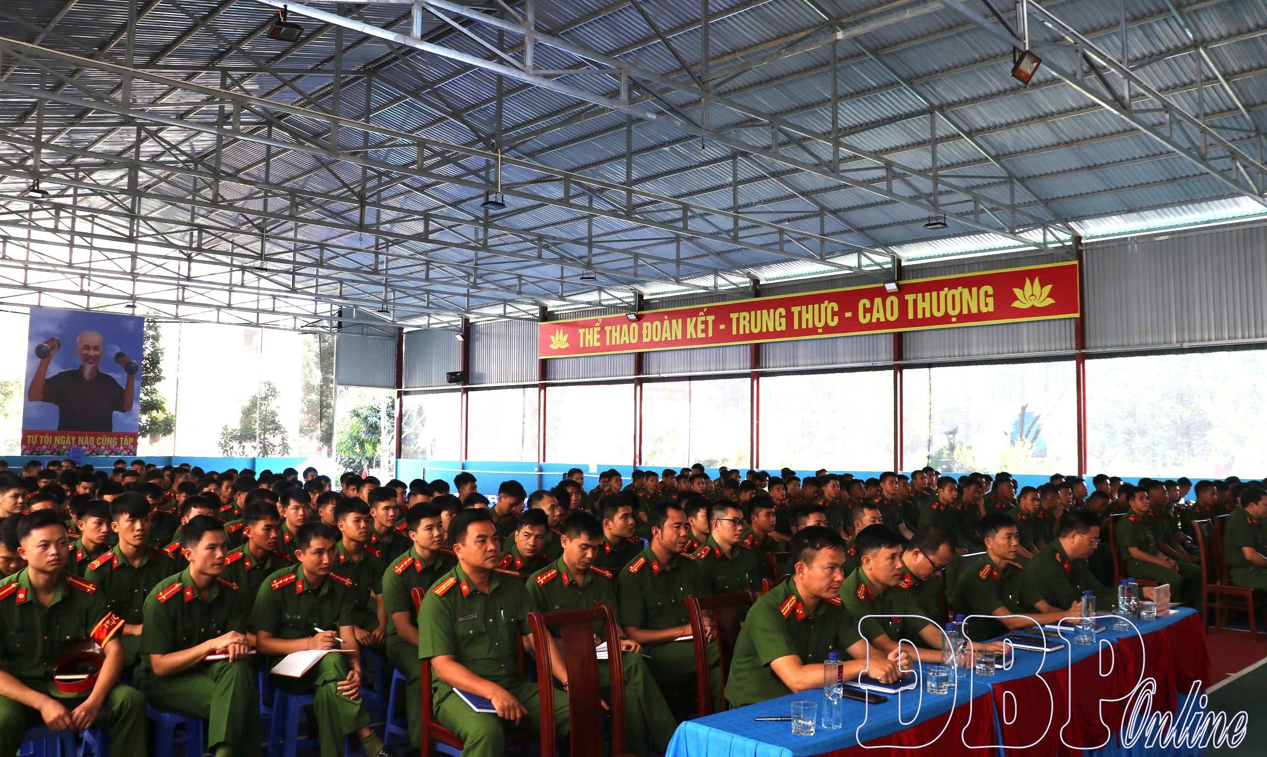 Cán bộ, chiến sĩ Trung đoàn Cảnh sát Cơ động Tây Bắc tham dự hội nghị.