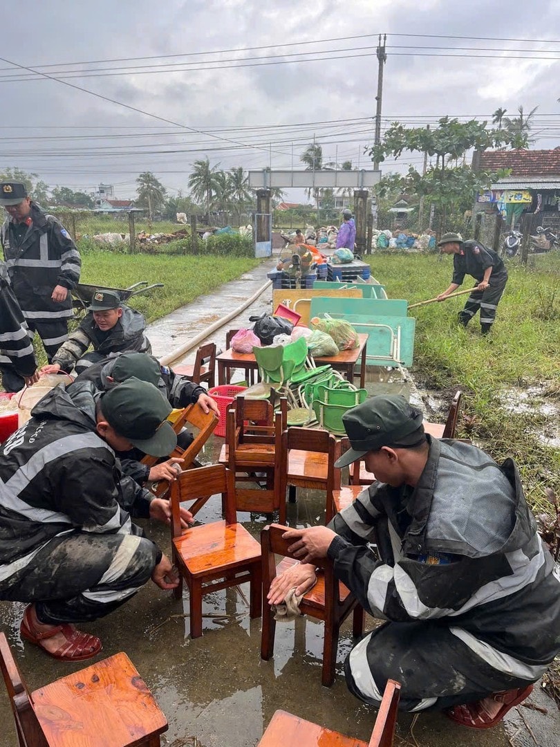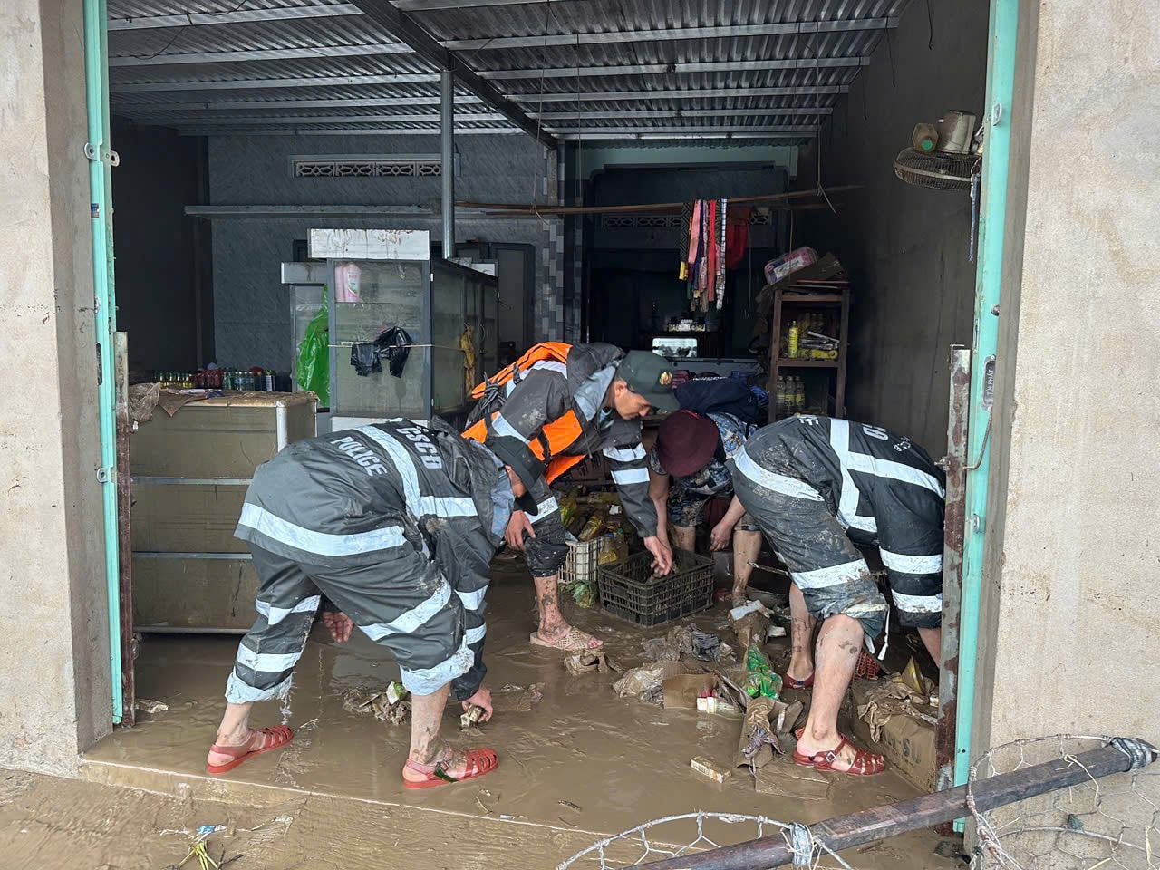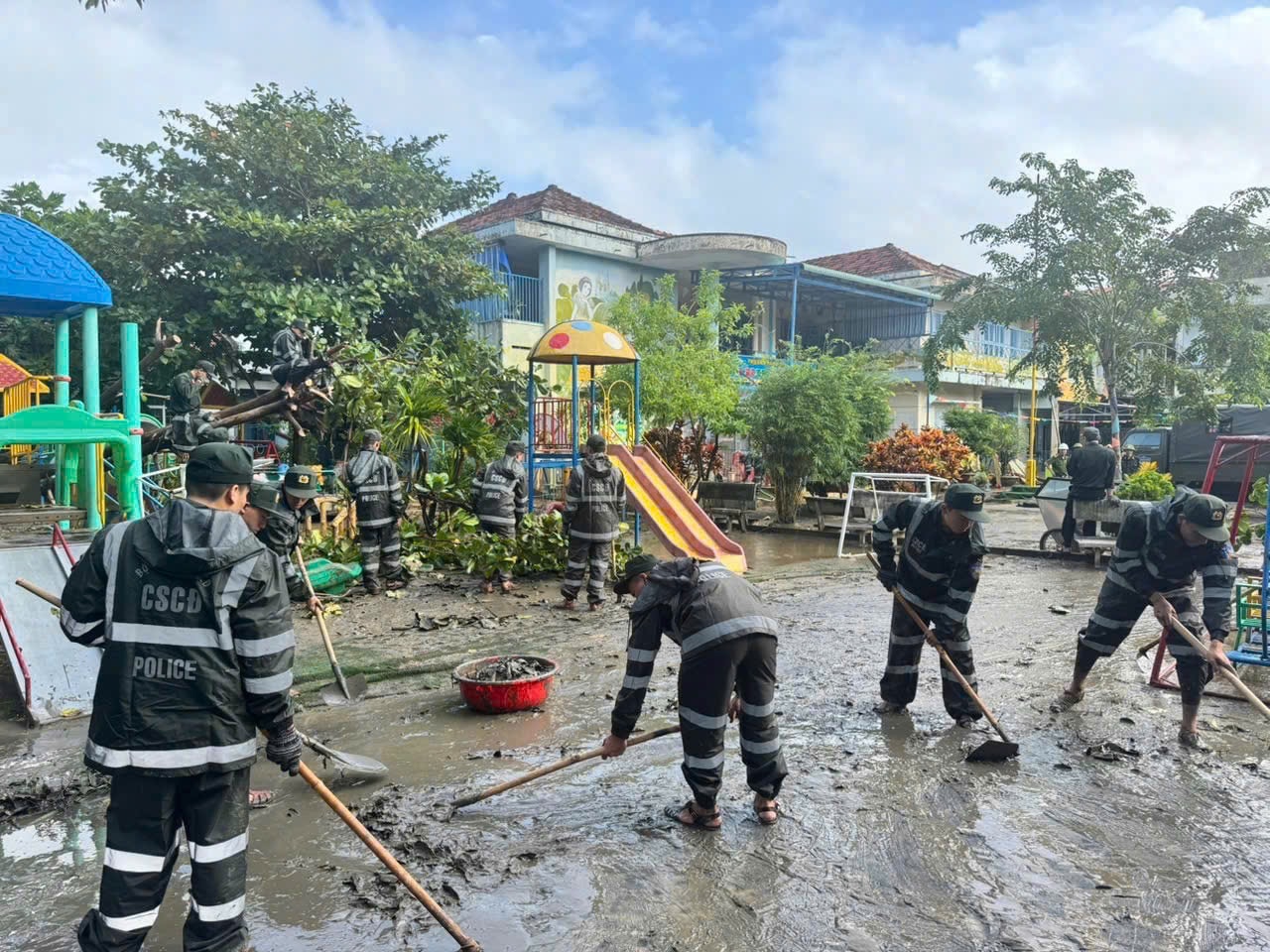 Cán bộ, chiến sĩ khẩn trương tổ chức dọn dẹp giúp người dân.