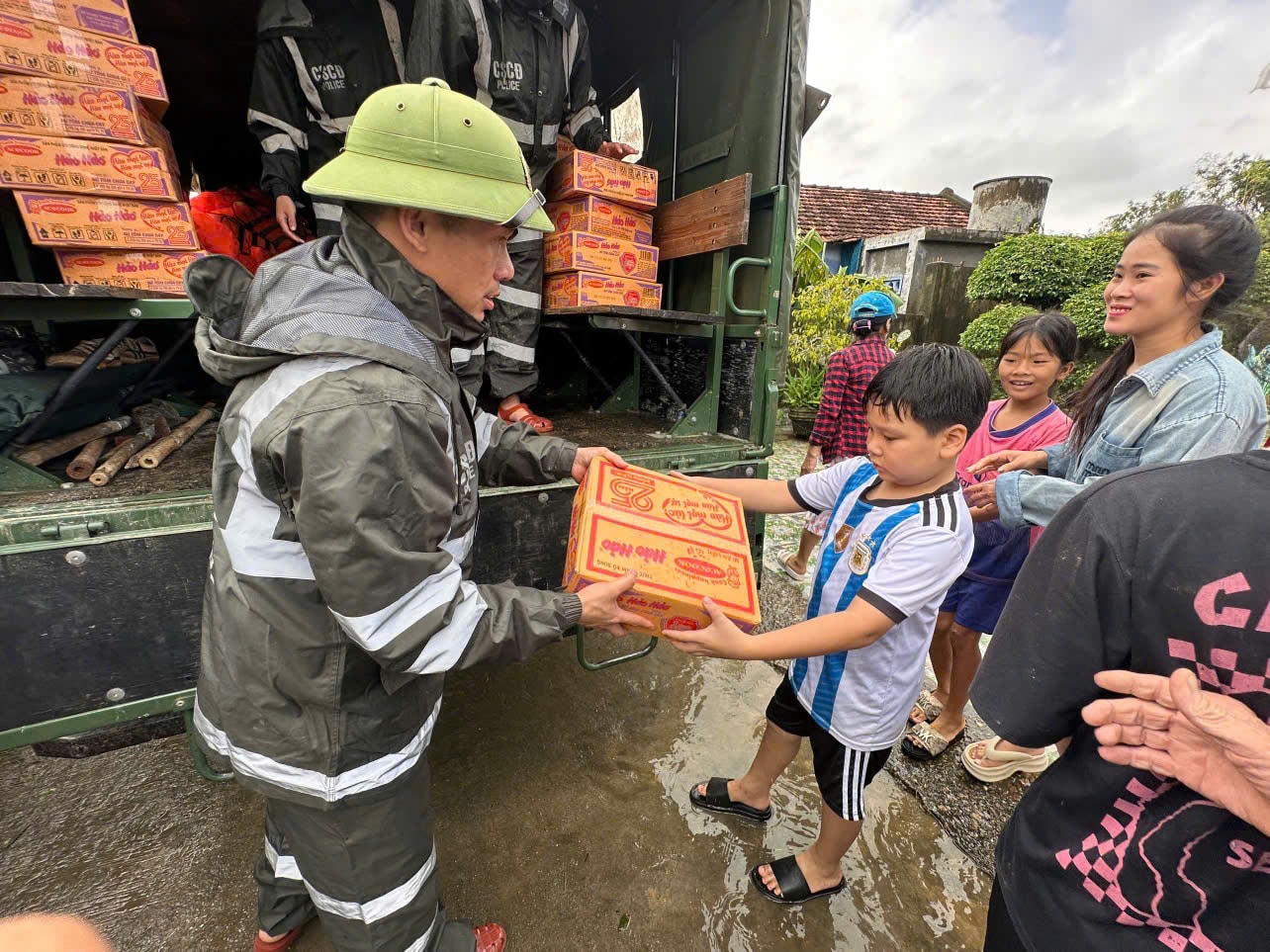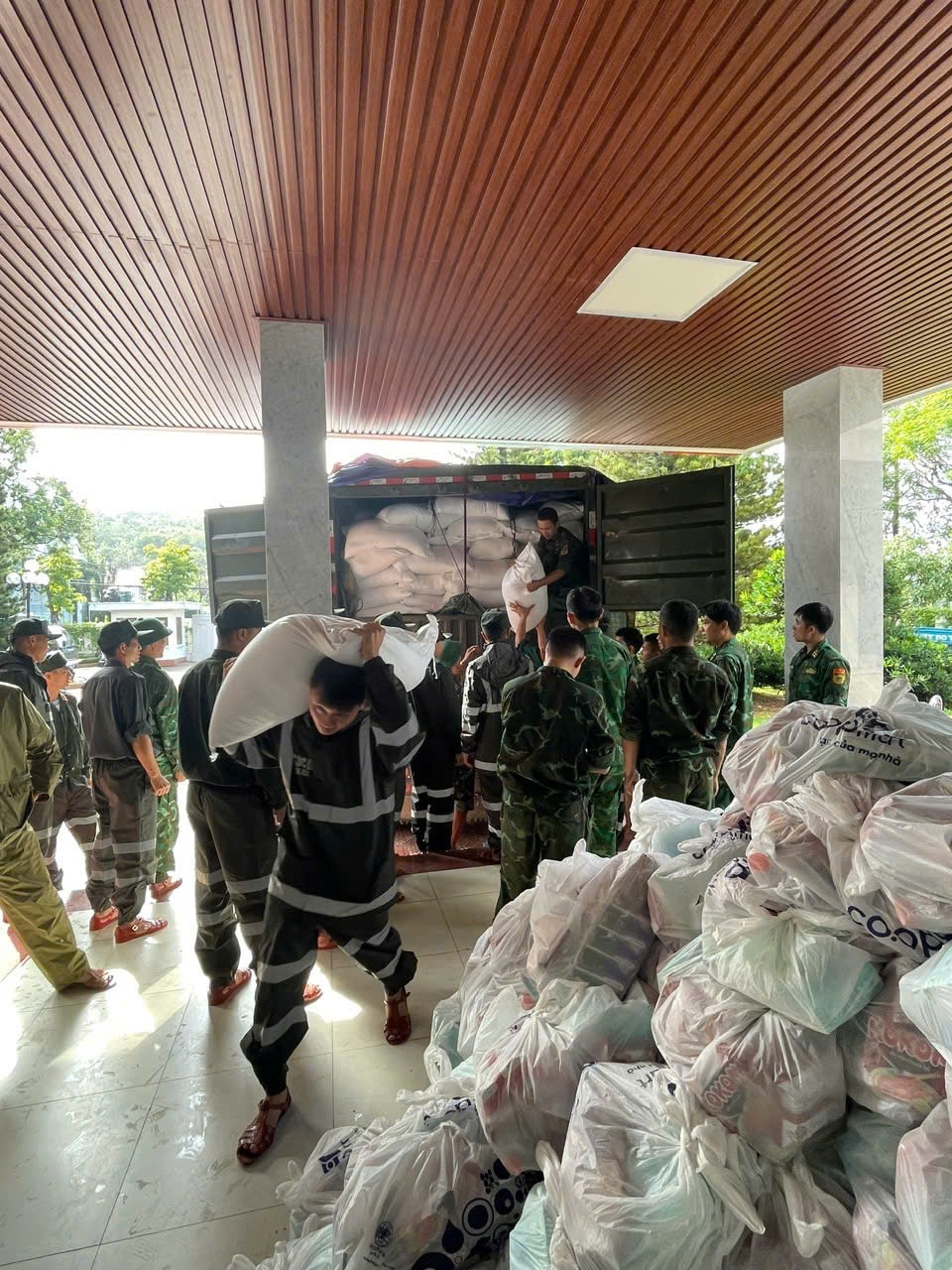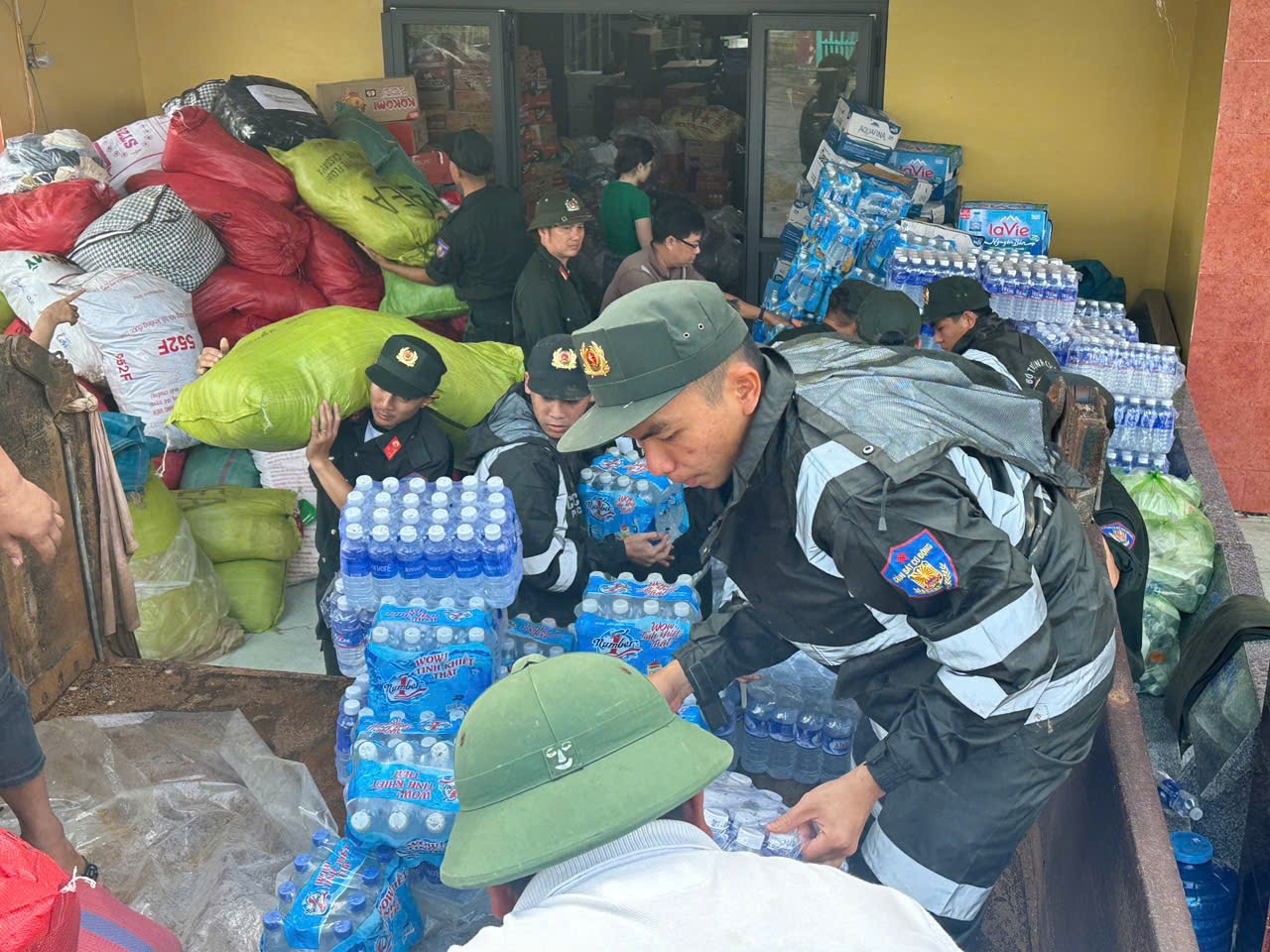 Cùng với đó, đơn vị đã huy động và vận chuyển từ các nhà hảo tâm hơn 50 tấn gạo, hơn 4.000 thùng mỳ tôm, hơn 1.800 thùng nước sạch, hơn 1.700 thùng sữa, các loại bánh kẹo và các nhu yếu phẩm khác như quần, áo, chăn, màn cần thiết gửi đến người dân bị ảnh hưởng nặng nề tại địa bàn.