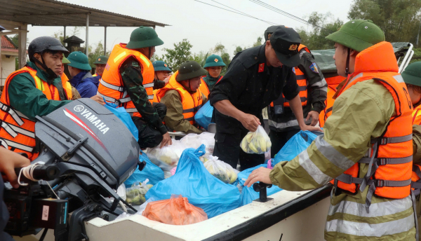 CBCS Trung đoàn Cảnh sát cơ động Trung bộ sẵn sàng lương thực, thực phẩm để trao tận tay cho người dân vùng lũ.
