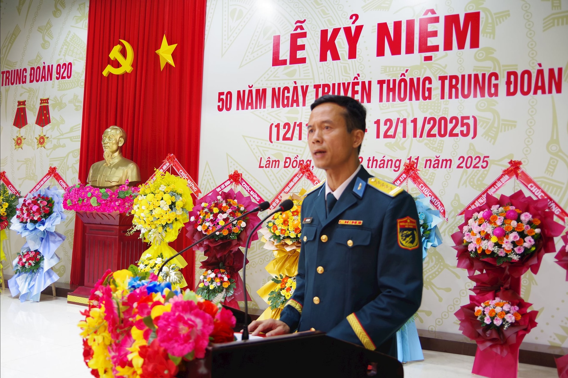 Trong diễn văn kỷ niệm, Đại tá Nguyễn Ngọc Đô, Trung đoàn trưởng Trung đoàn 920, đã ôn lại truyền thống 50 năm xây dựng, huấn luyện và trưởng thành của đơn vị: Ngày 12/11/1975, Bộ Tư lệnh Quân chủng Phòng không - Không quân ra Quyết định số 834 thành lập Trung đoàn Không quân 920 trực thuộc Trường Sĩ quan Không quân, làm nhiệm vụ tiếp quản, quản lý và huấn luyện trên các loại máy bay T-41, U-17, UH-1 tại sân bay Nha Trang. Đây là cột mốc lịch sử đánh dấu sự ra đời của Trung đoàn - một trong những đơn vị đầu tiên đảm nhiệm công tác huấn luyện phi công của Không quân nhân dân Việt Nam sau ngày miền Nam hoàn toàn giải phóng.