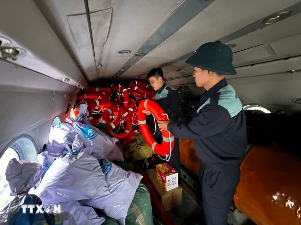 Máy bay sẵn sàng cất cánh chuyển hàng cứu trợ đến người dân các tỉnh Nam Trung Bộ. (Ảnh: Trần Lê Lâm/TTXVN)