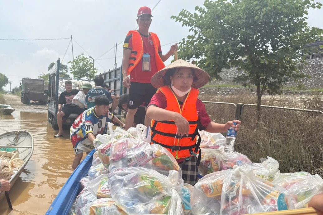 Vận chuyển nhu yếu phẩm vào hỗ trợ các hộ dân bị ngập sâu. Ảnh: Đô Tân
