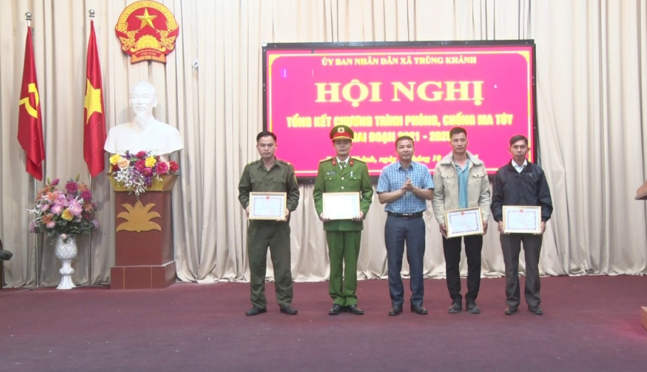 Nhân dịp này, Chủ tịch UBND xã Trùng Khánh tặng giấy khen 3 tập thể, 4 cá nhân có thành tích xuất sắc trong thực hiện Chiến lược quốc gia phòng, chống ma túy giai đoạn 2021 - 2025.