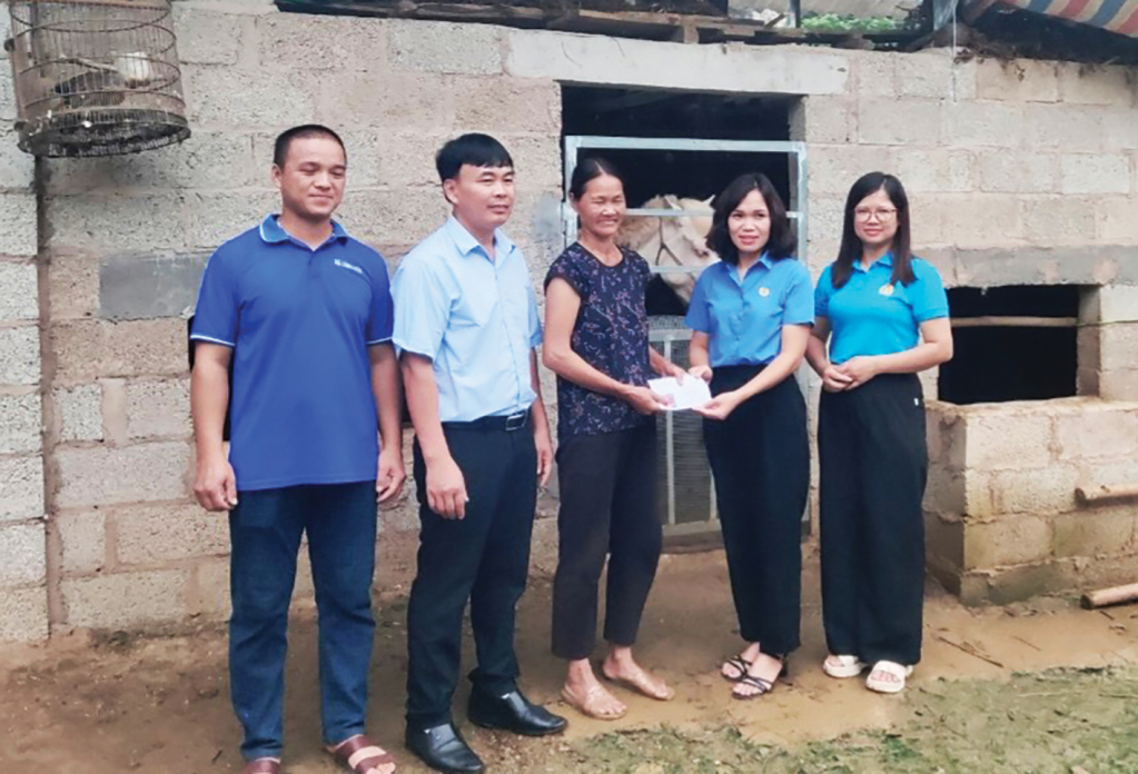 Công đoàn cơ sở khối UBND huyện Trùng Khánh trao tiền hỗ trợ xây dựng chuồng gia súc cho gia đình bà Diệp Thị Lâm, xóm Lũng Muôn, xã Lăng Hiếu.