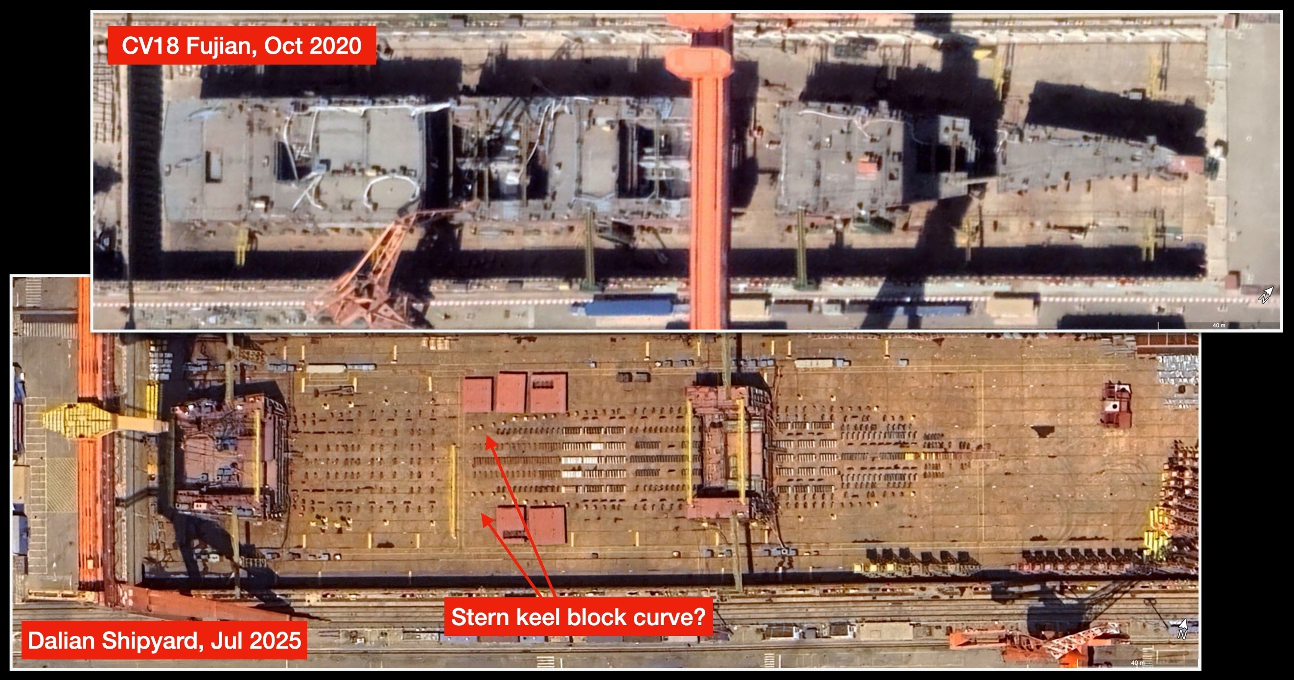 Những hình ảnh vệ tinh từ xưởng đóng tàu Đại Liên, Đông Bắc Trung Quốc, đã khiến giới quan sát phương Tây “dậy sóng”: một siêu tàu sân bay mới đang dần hình thành, với cấu trúc khổng lồ vượt xa cả tàu Phúc Kiến - niềm tự hào hiện nay của hải quân Trung Quốc.