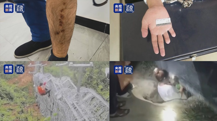 Hai ảnh ở trên: thương tích trên cơ thể nạn nhân. Hai ảnh ở dưới: nạn nhân vượt biên sang miền Bắc Myanmar. Ảnh: CCTV