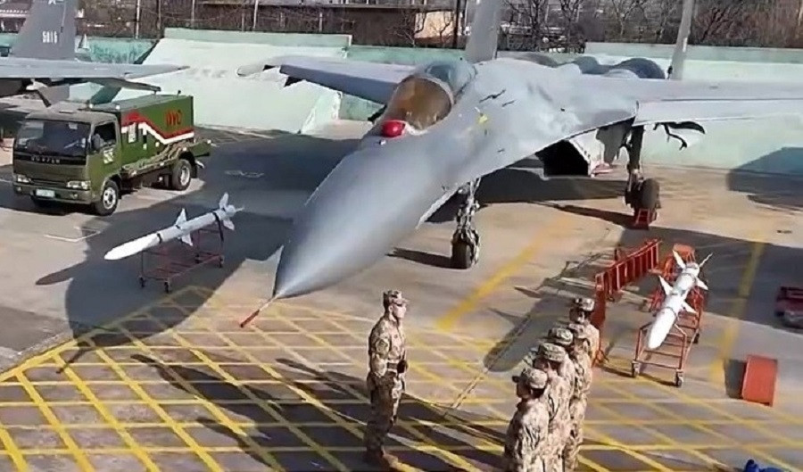Kỹ thuật viên mặt đất Trung Quốc tại Đại học Kỹ thuật Không quân tích hợp tên lửa R-27 lên máy bay chiến đấu J-11A. (Ảnh: Military Watch)