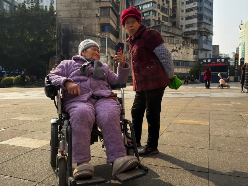 Hai phụ nữ cao tuổi trên một quảng trường ở thành phố Trùng Khánh. Ảnh: Getty Images