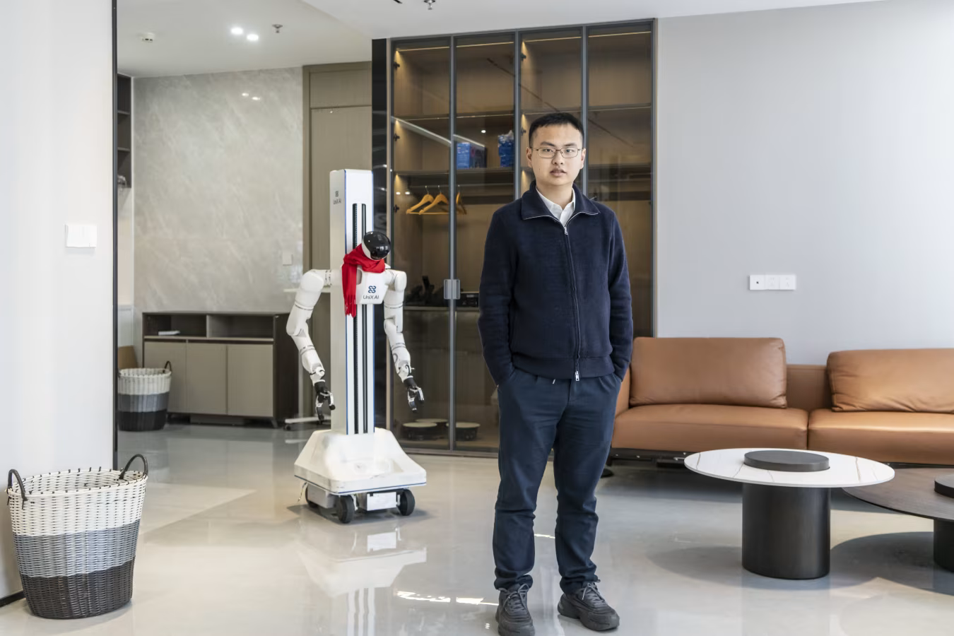 Vào một ngày gần đây tại UniX AI - nhà sản xuất robot Trung Quốc ở thành phố Tô Châu, nhà sáng lập Fred Yang đã trình diễn cho nhóm nhà đầu tư cách robot hình người Panther gắn bánh xe có thể chỉnh lại ga giường lộn xộn, nhặt rác và bỏ quần áo bẩn vào máy giặt rồi khởi động chu trình giặt.