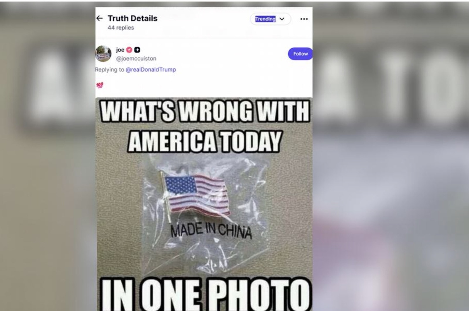 Theo báo DW của Đức, bức ảnh về một chiếc túi nhựa trong suốt đựng quốc kỳ Mỹ và dán nhãn "Made in China" (sản xuất tại Trung Quốc) đang lan truyền tại Mỹ dường như đã thể hiện được tâm trạng của người dân tại đây. Đối với những người ủng hộ Tổng thống Mỹ Donald Trump, đó là bằng chứng cho thấy nền kinh tế Mỹ đang gặp vấn đề nghiêm trọng và họ kêu gọi những người yêu nước tẩy chay hàng hóa Trung Quốc.