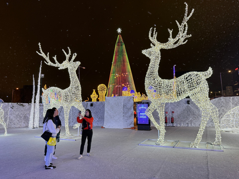 Cây ước nguyện Festilumi được tạo ra từ hàng chục nghìn chiếc đèn LED. (Ảnh: Mạc Luyện/TTXVN)
