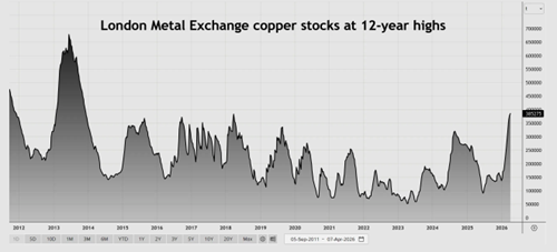 Nguồn tin thị trường cho biết một phần lượng đồng xuất khẩu từ Trung Quốc, đặc biệt là sang các khu vực châu Âu và Mỹ, có thể đến từ kho dự trữ tích lũy. Đồng sản xuất tại nước này cũng đang được chuyển trực tiếp tới các kho của LME tại Hàn Quốc và Đài Loan, đẩy lượng tồn kho trên sàn này lên mức cao nhất kể từ giai đoạn 2013.