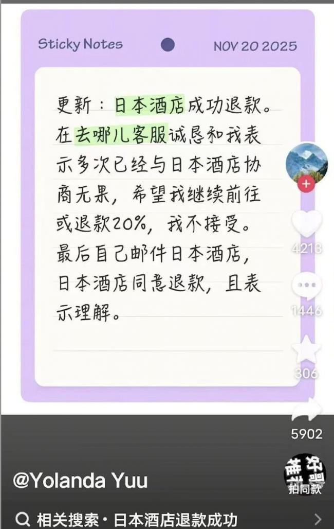 Có người cho biết đại lý du lịch nói “khách sạn Nhật không chịu hoàn tiền”, nhưng khi khách tự email cho khách sạn Nhật, thì phía khách sạn nói đồng ý hoàn trả toàn bộ, còn bày tỏ thông cảm.