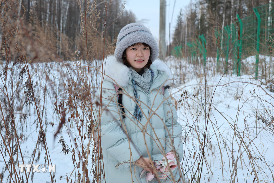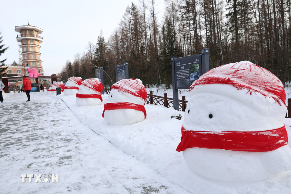 Dãy người tuyết chạy dọc theo lối vào khu thắng cảnh ở Trường Bạch Sơn. (Ảnh: Quang Hưng/TTXVN)