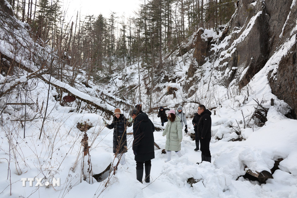 Tuyết phủ trắng sườn núi của dãy Trường Bạch Sơn khiến nơi đây vừa tráng lệ vừa thơ mộng. (Ảnh: Quang Hưng/TTXVN)