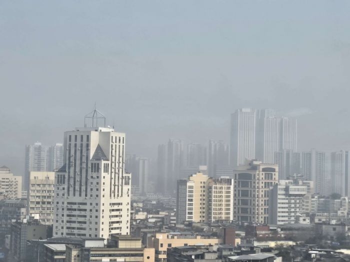 Bầu trời thành phố Thành Đô ngày 12/1. Thành phố này đã kích hoạt cảnh báo màu vàng về ô nhiễm không khí nghiêm trọng vào trưa ngày 8/1/2026. (Ảnh: Mạng Kinh tế Tứ Xuyên)