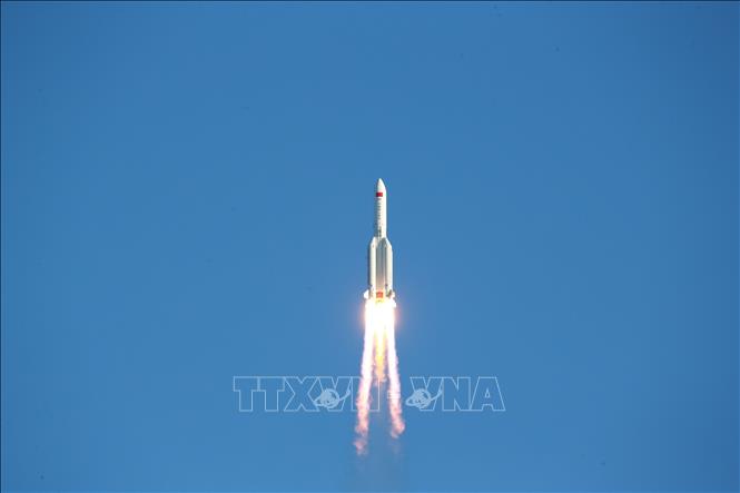Tên lửa đẩy Trường Chinh-5B rời bệ phóng tại Trung tâm Phóng vệ tinh Văn Xương ở tỉnh Hải Nam, Trung Quốc. Ảnh tư liệu: THX/ TTXVN