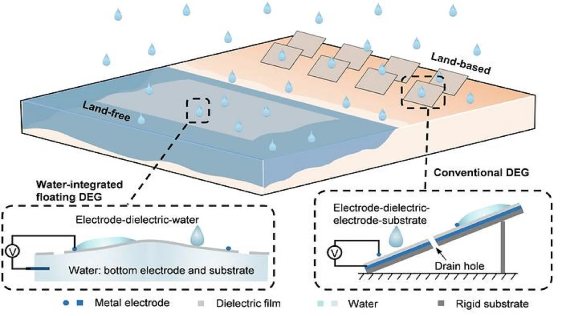Khi giọt mưa rơi xuống màng điện môi nổi (một lớp vật liệu cách điện đặc biệt giúp tạo ra điện tích khi bị giọt nước va chạm), nước hấp thụ lực va chạm và các ion trong nước truyền điện tích, tạo ra điện áp khoảng 250 vôn mỗi giọt – tương đương với các thiết bị truyền thống. Thiết bị hoạt động ổn định trong nhiều điều kiện như nhiệt độ cao, nước mặn hay nước hồ bị ô nhiễm sinh học.