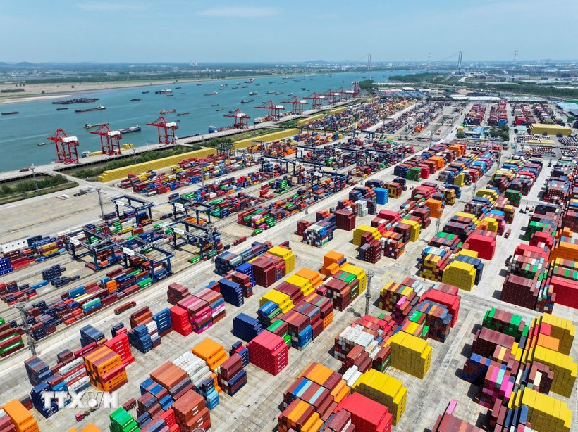 Quang cảnh cảng hàng hóa tại tỉnh Giang Tô, Trung Quốc. (Ảnh: THX/TTXVN)